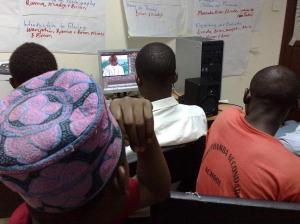 We’ve been trying to do both filming and editing, splitting into groups to make the most of the equipment and space, transportation, etc., and it’s been flowing really nicely! The power outages have been a small issue but we’ve got great laptop batteries – extra batteries for each laptop, which means we can work without power for up to 6-8 hours on each laptop. So power is not such a problem with editing if we do it in small groups. Yesterday the water went off too, and we got a little nervous that the training center staff would go home for the weekend and leave us without water, but it came back on again around 9. Relief!