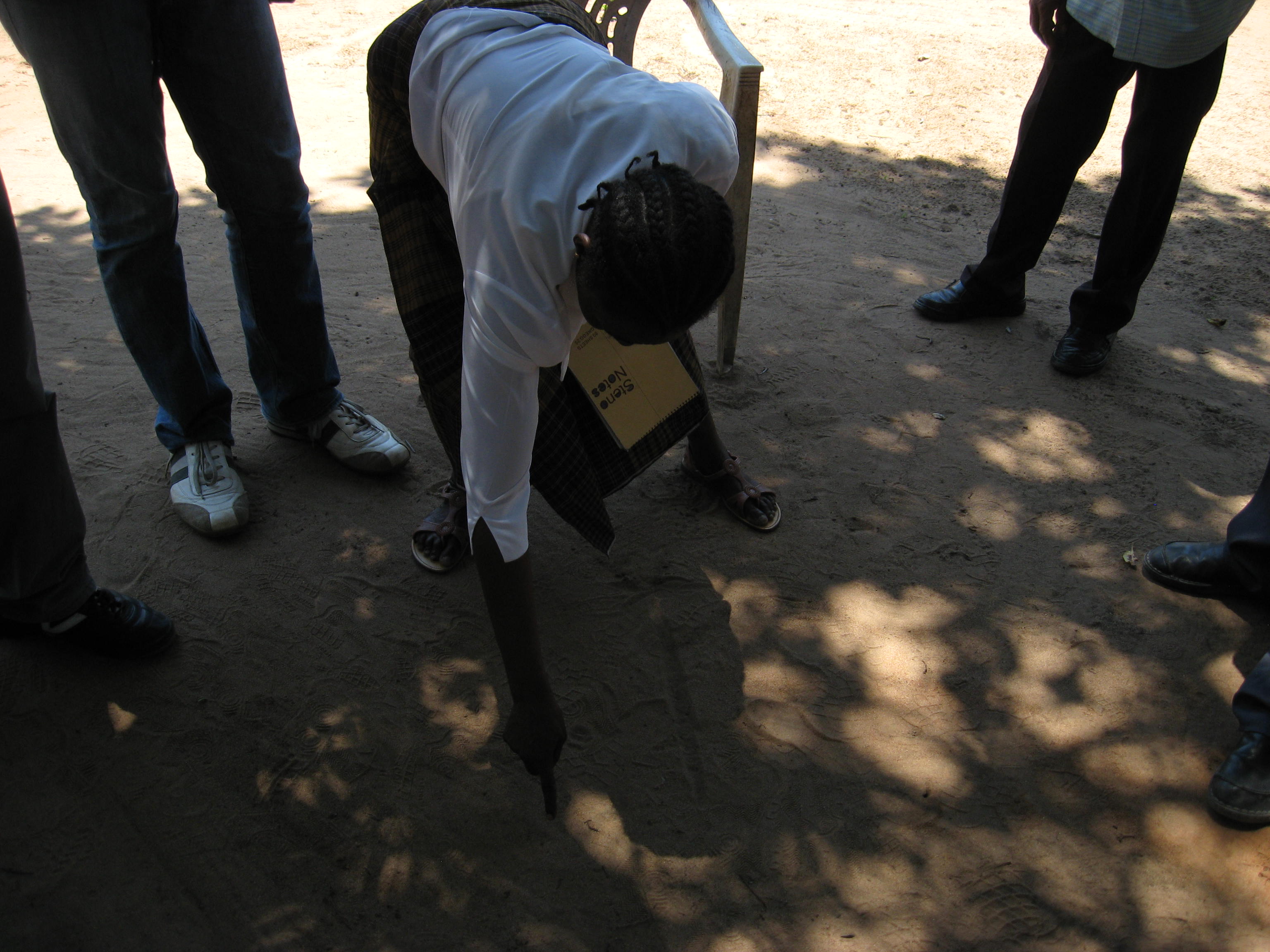 We met with community leaders to start mapping one sector of the Magaiça Community. Albertina sketched out on the ground where each group would go.