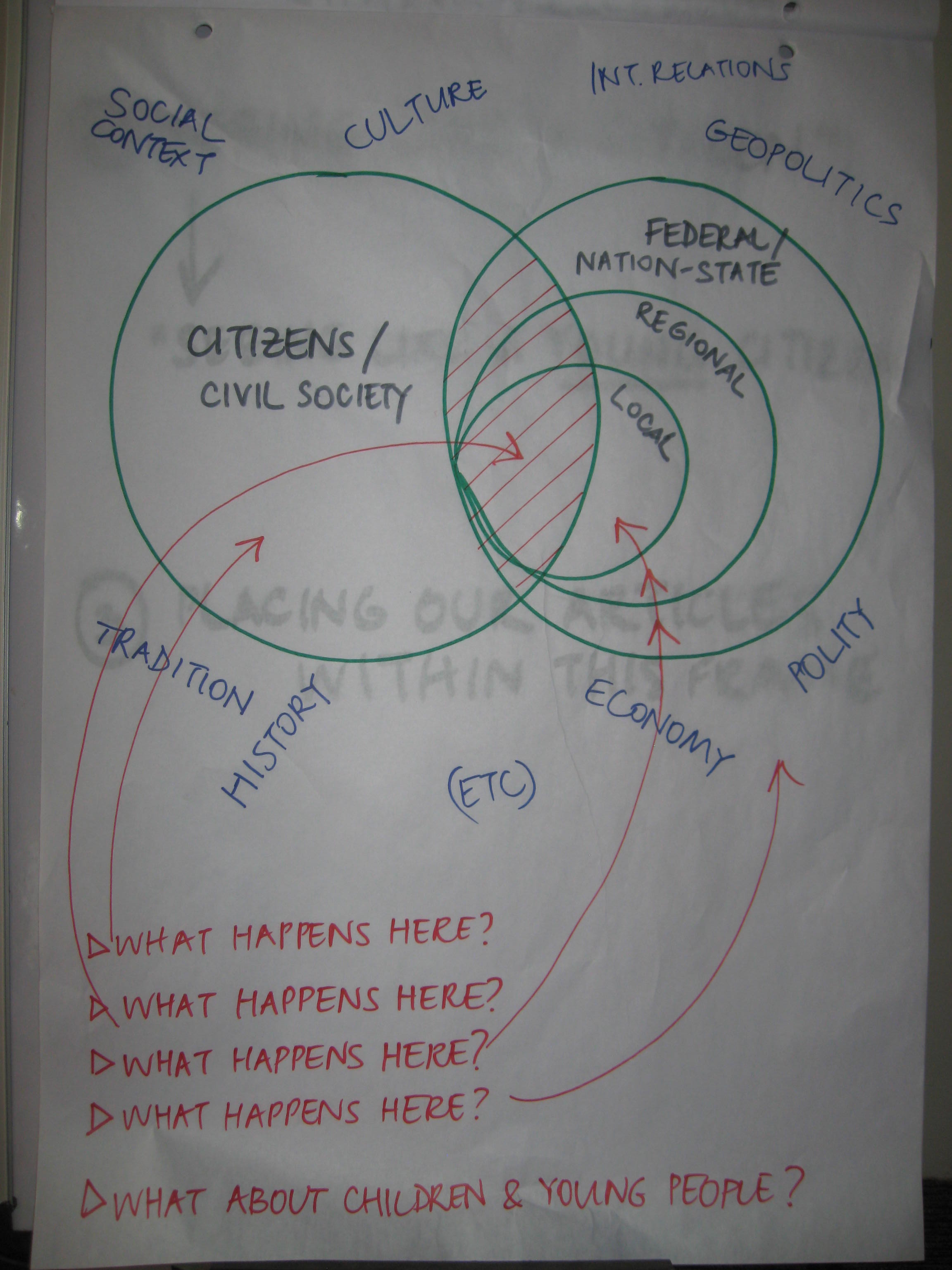 ‘Governance is about how power is exercised. It’s about certain practices and systems – in state, family, community, etc. If you are challenging power, whether policy change or change in practice, whether it’s gender or whatever, you want to address unjust power relations, so at some point you need to confront the polity of those structures. However being engaged in governance is not about partisan politics. There’s a difference between a political party and the issue of politics. If I say I’m in solidarity with children, I’ve taken a political position. Political parties are about obtaining power. But governance is about challenging power relationships.’