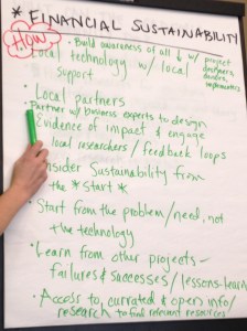 Sherry noted that when technology is used to do this, participation becomes more restricted to a smaller, more technically savvy group rather than the entire community. It takes longer to get the information back to the community. Many urban poor are technology literate, but there are complexities. Sometimes youth want to go with technology and older leaders are more comfortable with the more manual, inclusive processes.